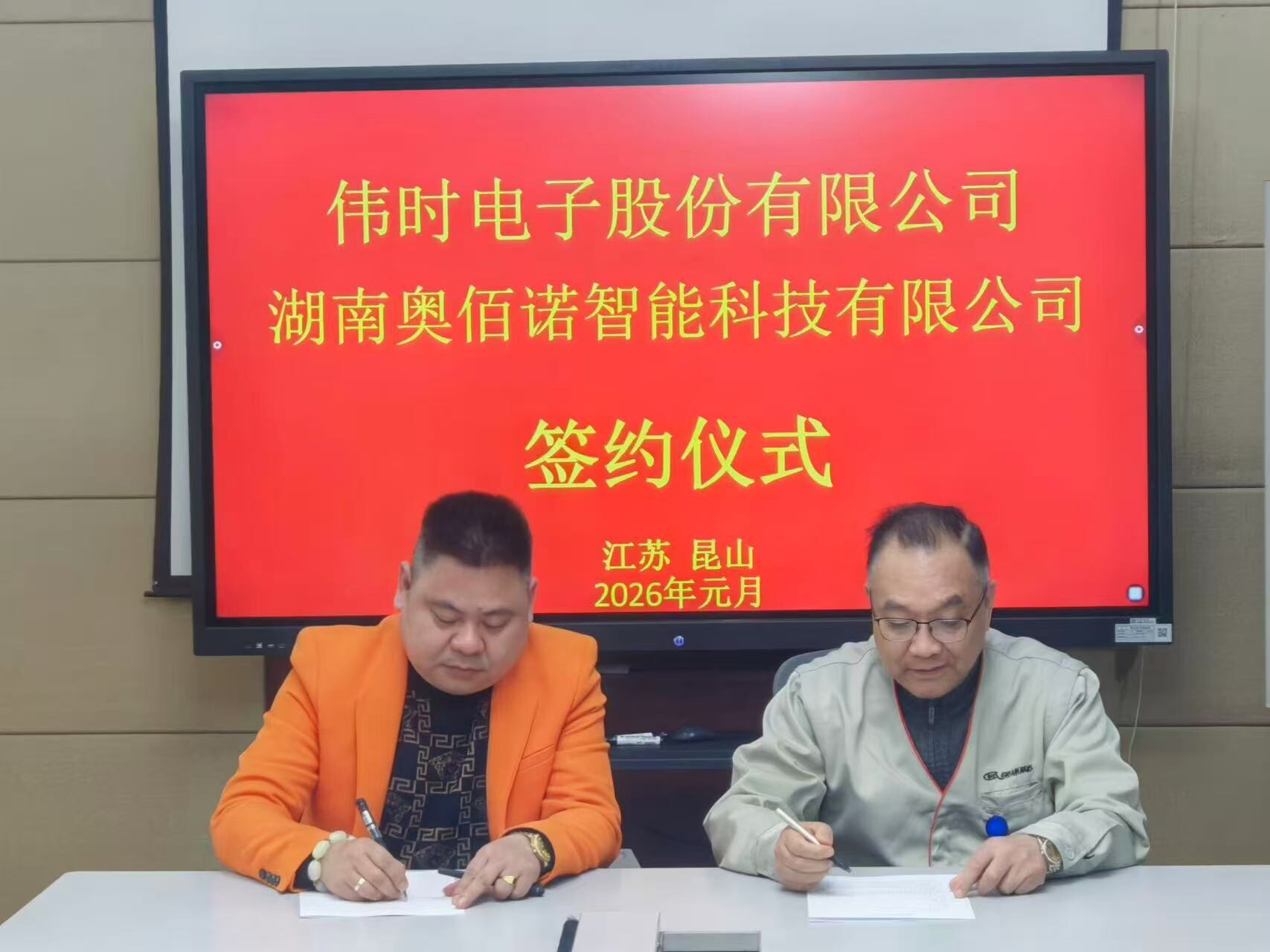 新湖南客户端1月29日讯(通讯员 县商务局)1月29日,东安乡贤企业湖南奥佰诺智能科技有限公司在苏州与伟时电子股份有限公司(昆山)、江苏富兰地工具公司(苏州普拉提德纳米涂层科技有限公司)完成合作签约,预计3年合作产值达1亿元,为东安智能制造产业发展添砖加瓦,也彰显了乡贤返乡创业的强劲活力。副县长周禄雄出席签约仪式。
