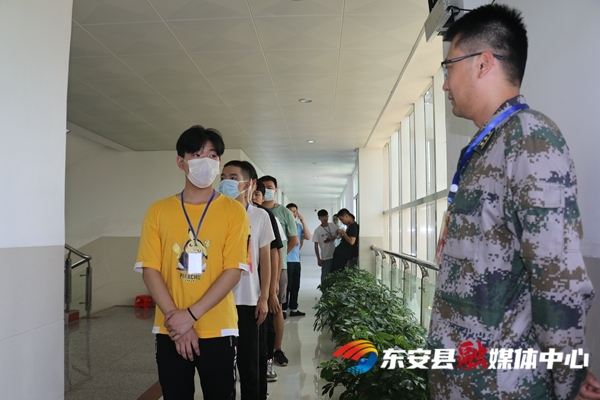 在体检现场,体检组工作人员和应征青年进入营门需测量体温、出示健康码、疫情防控行程卡,应征青年人人佩戴口罩。为确保征兵体检工作准确公正,东安人武部对体检实行封闭管理,参加体检的应征青年须携带相关证件,经审核通过后,统一集合进行体检前的初步筛选,而后由专人负责带队分批分房间进行体检。