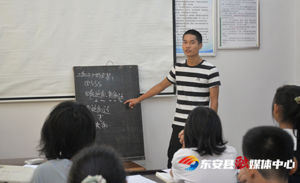 “你这个作文写得挺好的,就是字要再注意下,要写得更工整些!”8月21日,在东安县花桥镇刘阳村村部会议室临时改造的教室里,刘玲娜在给村里少年刘恩彤指导作文写作。刘恩彤今年14岁,下学期读初三了。因父母在外务工,跟着爷爷奶奶的她,署假里每天都来村部上课,课堂上还积极提问。