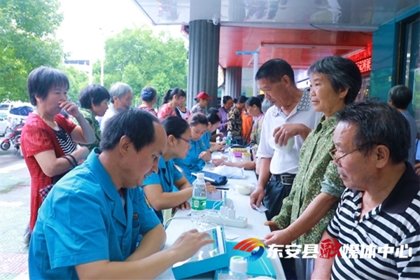 据悉,7月以来,东安县公共卫生服务中心共开展义诊60多次,为全县7000多位65岁以上老人进行了免费体检,为高血压、糖尿病患者免费发放药品4000余份,共计5万余元。