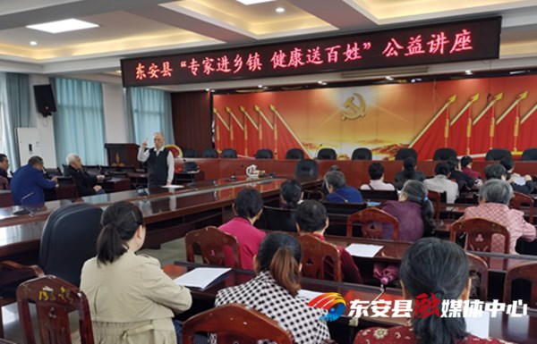 新湖南客户端9月24日讯 (通讯员 张雄 ) 9月24日,东安县科协邀请湖南省老科协养生专家,在芦洪市镇举行“专家进乡镇,健康送百姓”公益讲座,为群众送去健康生活知识。