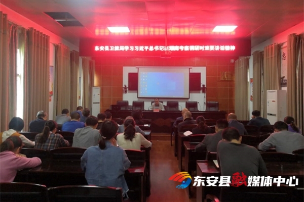 会议强调,要牢固树立“四个意识”,坚定“四个自信”,坚决做到“两个维护”,围绕中心,服务大局,充分发挥卫健系统优势,用心用情为人民服务,推动东安县卫健工作取得更大实效。