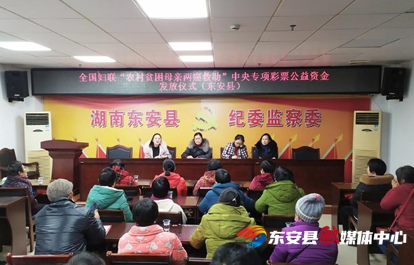 新湖南客户端12月15日讯(通讯员 王艳 )为进一步关爱农村妇女健康,切实减轻患病妇女家庭经济负担,12月15日,东安县妇联举行了“农村贫困母亲两癌救助”中央专项彩票公益金资金发放仪式,为全县30名两癌受助群众发放了救助金。