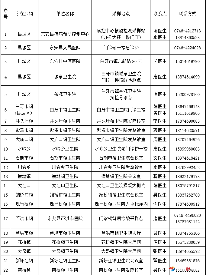 为避免人群聚集,安全方便检测,我县共设置16个乡镇采样点和6个县城区采样点,建议大家分片区分辖区有序前往各采样点进行检测: