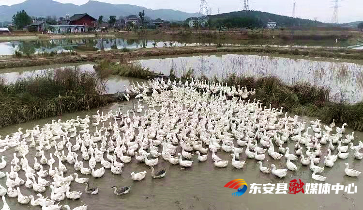 新湖南客户端2月5日讯(通讯员 何丽 唐孟明)东安县芦洪市镇大枧塘村的唐垂锋,依托优越的自然条件,因地制宜生态养殖大雁鹅,返乡创业,闯出了一条生态致富新路。